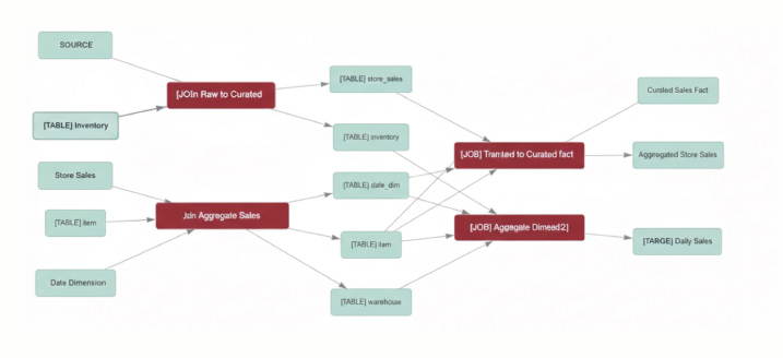 この一連の流れを線で結び、データの依存関係を「地図」のように可視化することで、複雑なデータパイプラインの全体像を俯瞰的に把握できるようになります。