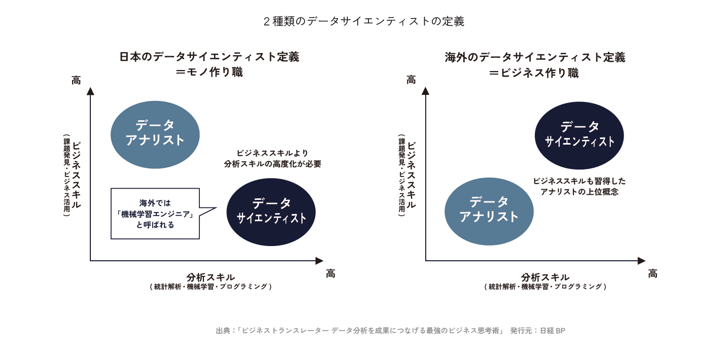 日本ではなぜか「アナリスト=ビジネス寄り」「サイエンティスト=技術寄り」と別の専門家として扱われがちです。これでは、アナリストとして入社した後のキャリアパスが見えにくくなってしまいます。