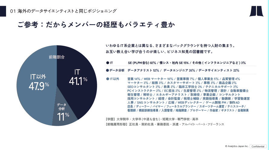 「3Kは苦手だけど、人の想いも大切にしたい」。 もしあなたが、そんな血の通った優しいデータアナリストを目指すなら、分析屋は最高の場所になることをお約束します。