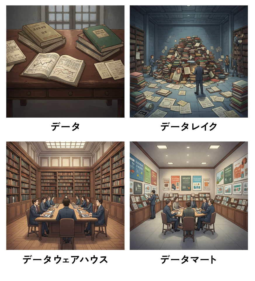 この記事でご紹介する「データレイク」は、その図書館の中でも、未来の価値を生み出す「地下の巨大な収蔵庫」にあたる場所です。